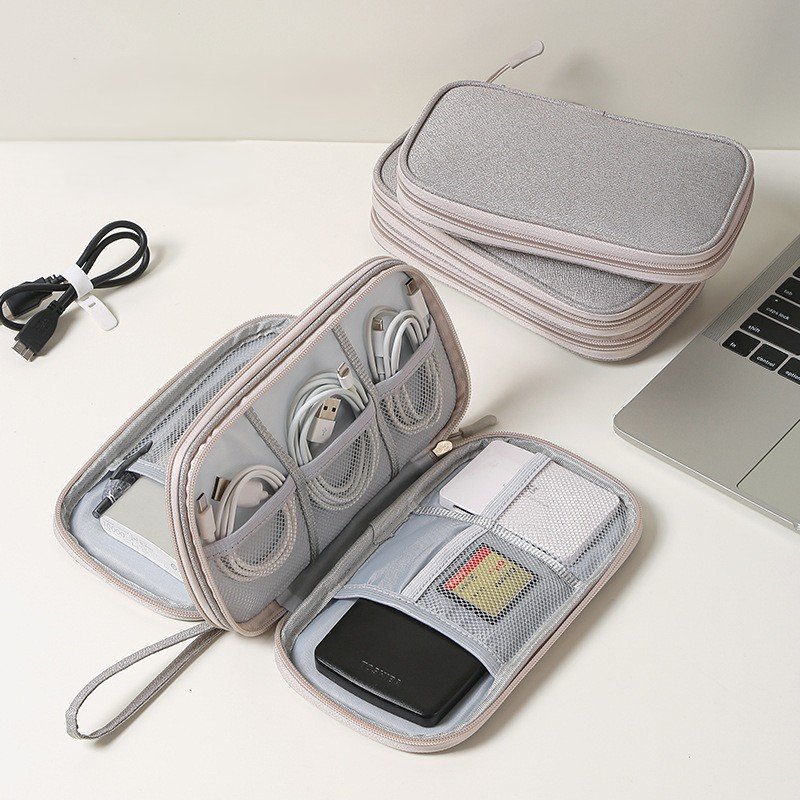 En un mundo digital, el orden es poder. Este estuche organizador está diseñado para ser el centro de mando de tu vida tecnológica portátil. Su interior, inteligentemente compartimentado con bolsillos de malla elástica y bucles ajustables, asegura cada uno de tus accesorios: desde cargadores y baterías externas hasta discos duros, auriculares y tarjetas de memoria. El exterior acolchado protege tus valiosos gadgets de golpes y arañazos, mientras que su diseño compacto te permite encontrar todo de un solo vistazo. Viaja o muévete por la ciudad con la confianza de que tu universo digital está seguro y en perfecta armonía.